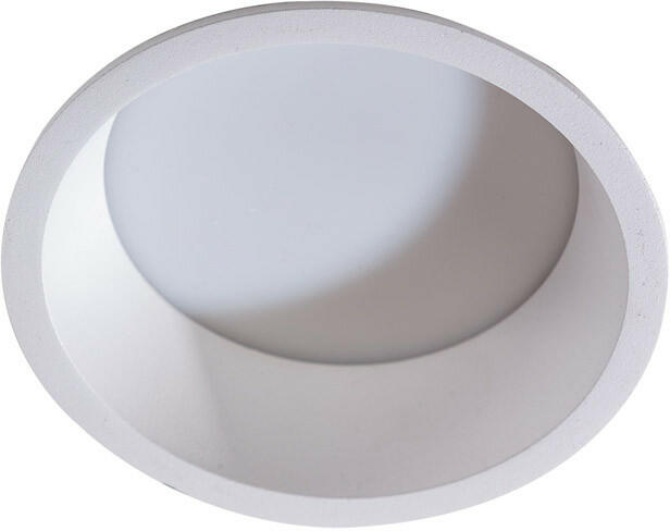 Fehér színű, fém, beépíthető, kerek lámpa. Kivágási mérete 135mm. 3000 kelvines, azaz meleg fehér fényű, beépített LED fényforrással rendelkezik, amely nem cserélhető.