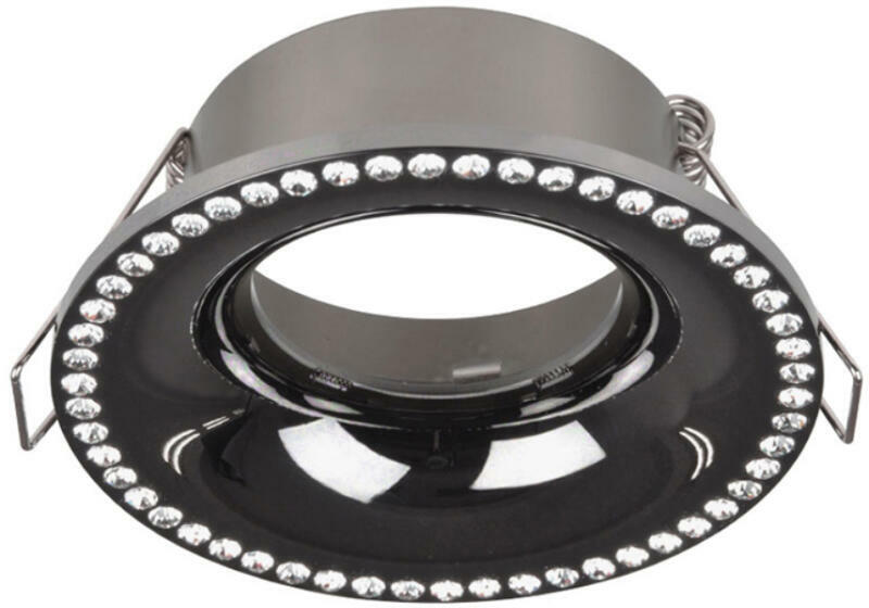 Kövekkel díszített, fényes fekete, beépíthető spotlámpa. Kivágási átmérője 75mm. A fényforrást a csomagolás nem tartalmazza. Kiemelő keret rendelhető hozzá többféle színben, melyet a kiegészítők között talál.  Specifikációk:Gyártó : AZzardo
