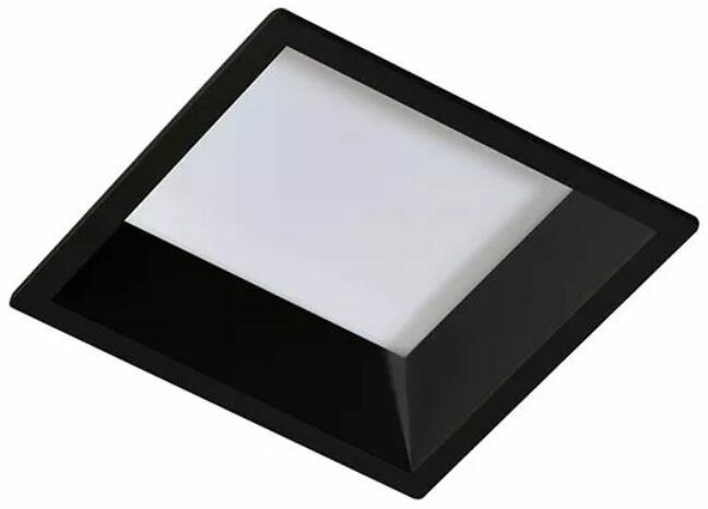Fekete színű, fém, beépíthető lámpa. Kivágási mérete 91x91mm. 3000 kelvines, azaz meleg fehér fényű, beépített LED fényforrással rendelkezik, amely nem cserélhető.