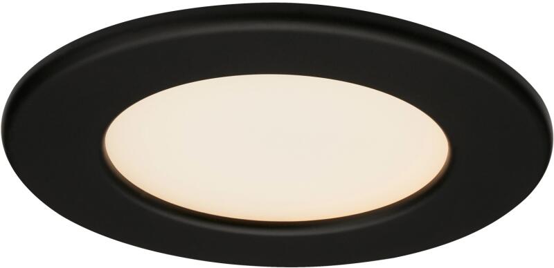 A Thin sorozat matt fekete színű Brilo LED-es süllyesztett lámpája 6 wattos, 450 lumen fényteljesítményű, fixen beépített LED-táblával rendelkezik. A lámpa melegfehér fényszínnel rendelkezik, és IP44 védettségi osztályú, fröccsenő víz elleni védelemmel rendelkezik, ezért fürdőszobákba is alkalmas. A süllyesztett lámpa praktikus három darabos szettben kapható. A beszerelési átmérője 100 mm a beszerelési magasság pedig 30 mm.