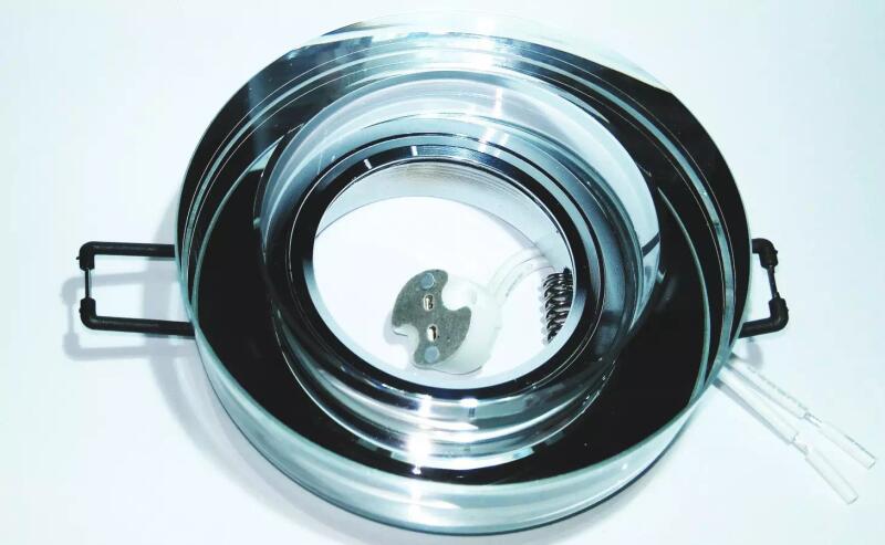 Foglalata: GU5.3. Maximum 1x50W teljesítményű hagyományos izzóval használható. Magassága: 32 mm. Átmérője: 90 mm. A beépítéshez szükséges furat átmérője: 60 mm. A beépítéshez szükséges furat mélység: 80 mm. A lámpatest jellemző színe: tükör. Anyaga: üveg. MR16 fejű, azaz 50mm fejátmérőjű spotlámpák befogadására alkalmas fix (nem billenthető) minőségi foncsorozott hátlapú vastag üveg lámpatest, melyben a fényforrást rögzítő keret CNC megmunkált alumínium öntvény. A lámpatestbe a fényforrás befogatása a szokványos rögzítő rugó helyett menetes megmunkált alumínium karimával történik. Ettől a fényforrás rögzítése nehezebben történik, amiért a szebb látvány kárpótol. A lámpatesthez mellékelve van egy GU5.3-as foglalat. Ezáltal 12Voltról működő tűlábas spotlámpákhoz használható.
