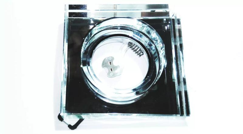 Foglalata: GU5.3. Maximum 1x50W teljesítményű hagyományos izzóval használható. Magassága: 32 mm. A beépítéshez szükséges furat átmérője: 60 mm. A beépítéshez szükséges furat mélység: 80 mm. A lámpatest jellemző színe: tükör. Anyaga: üveg. MR16 fejű, azaz 50mm fejátmérőjű spotlámpák befogadására alkalmas fix (nem billenthető) minőségi foncsorozott hátlapú vastag üveg lámpatest, melyben a fényforrást rögzítő keret CNC megmunkált alumínium öntvény. A lámpatestbe a fényforrás befogatása a szokványos rögzítő rugó helyett menetes megmunkált alumínium karimával történik. Ettől a fényforrás rögzítése nehezebben történik, amiért a szebb látvány kárpótol. A lámpatesthez mellékelve van egy GU5.3-as foglalat. Ezáltal 12Voltról működő tűlábas spotlámpákhoz használható.