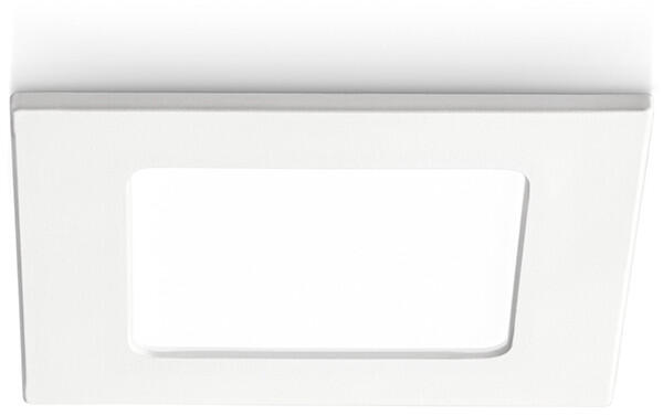 Négyszögletes süllyesztett spotlámpa. Hőre lágyuló műanyag szerkezet. Matt fehér felület. Vakító hatású műanyag diffúzor. LED modul tartozék.