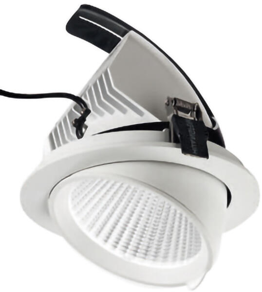 Állítható süllyesztett spotlámpa. Alumínium szerkezet és hűtőborda. Matt fehér felület. Átlátszó üveg diffúzor. CREE LED modul tartozék. Tartozék, de nem beépített transzformátor. 3 év garancia.