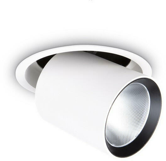 Fehér színű alumínium mennyezetbe építhető spot lámpa beépített LED fényforrással, 90 fokig állítható és 350 fokban forgatható fejjel.
