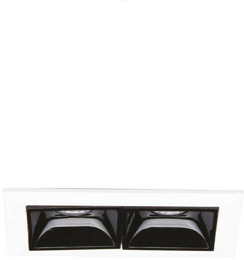Fehér színű alumínium keretes mennyezetbe építhető lámpa fekete színű műanyag elválasztóval, beépített LED fényforrással.