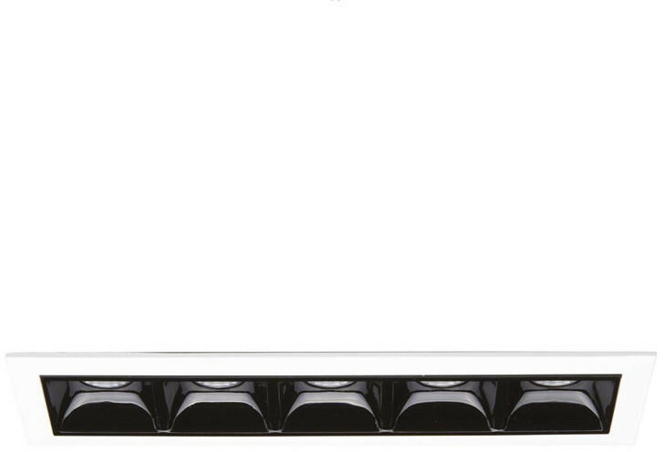 Fehér színű alumínium keretes mennyezetbe építhető lámpa fekete színű műanyag elválasztóval, beépített LED fényforrással.