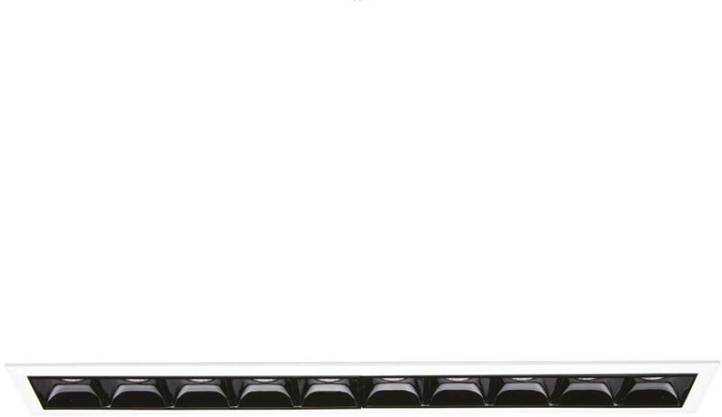 Fehér színű alumínium keretes mennyezetbe építhető lámpa fekete színű műanyag elválasztóval, beépített LED fényforrással.
