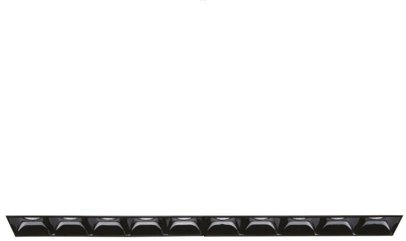 Fehér színű alumínium vázas mennyezetbe építhető lámpa fekete színű műanyag elválasztóval, beépített LED fényforrással. A lámpa gipszkartonba építhető és a lámpa teljes széle elrejthető.