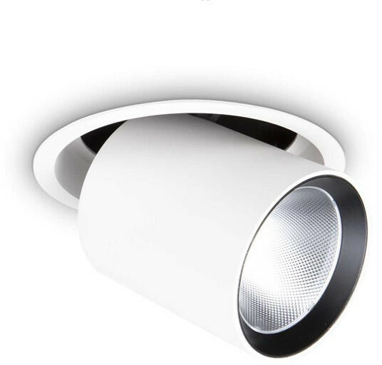 Fehér színű alumínium mennyezetbe építhető spot lámpa beépített LED fényforrással, 90 fokig állítható és 350 fokban forgatható fejjel.
