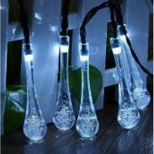 LEDvonal Led fényfüzér , kültéri , napelemes , vízcsepp alakú , 30 db , 2 m , hideg fehér , 8 programos , IP44 (315250-uk)