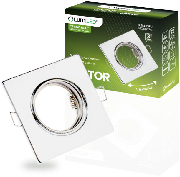 Lumileds Süllyesztett halogén lámpatest mozgatható négyzet alakú PICTOR krómlap MR16 GU10 LUMILED (LEDOPRMIA366)