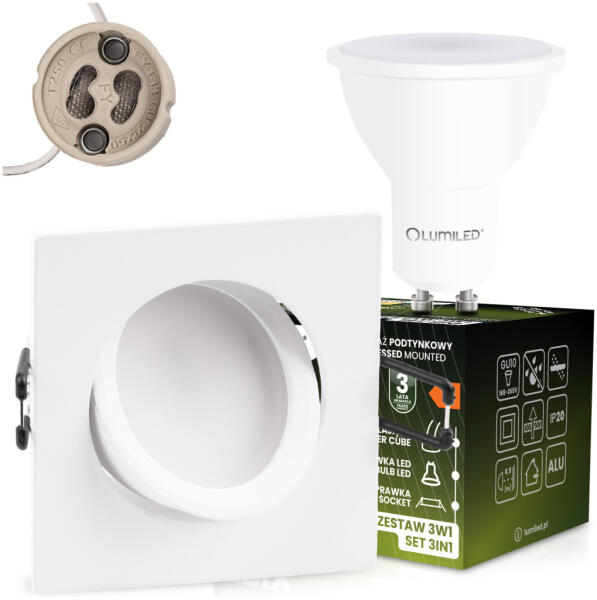Lumileds Süllyesztett, négyzet alakú halogén lámpatest, mozgatható, TRIX 3 az 1-ben GU10, 6W, 4000K, matt fehér, LUMILED (LEDOPRMIA742)