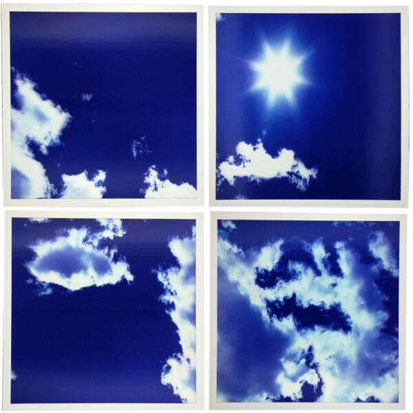 Az alumínium keret fényes fehér színűre van festve, a panel világítófelülete egyedi, égbolt megjelenést kapott. A felületi felhőmintázat panelenként változó. Tápegység - LED panel driver / trafó