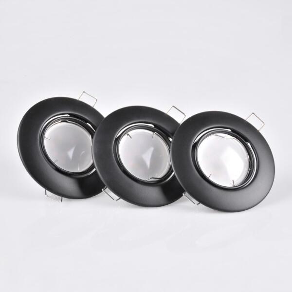 - süllyesztett szerelvény - átmérő: 9 cm - magasság: 5,2 cm - rögzítőfurat átmérője: 7 cm - 3 tartó tartozék - 3 db izzó tartozék - 3,5 W-os izzók - izzócsatlakozó: GU10 - maximális izzó teljesítmény: 8 W - fénypontok száma: 1 - IP20 - anyag: acél - szín: fekete