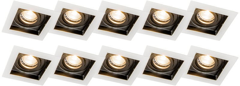 QAZQA 10 db-os beépíthető spotlámpa készlet fehér & fekete - Carree (98712)