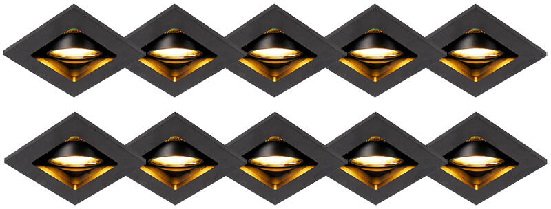QAZQA 10 db-os készlet beépíthető spotlámpa fekete állítható - Qure (102691)