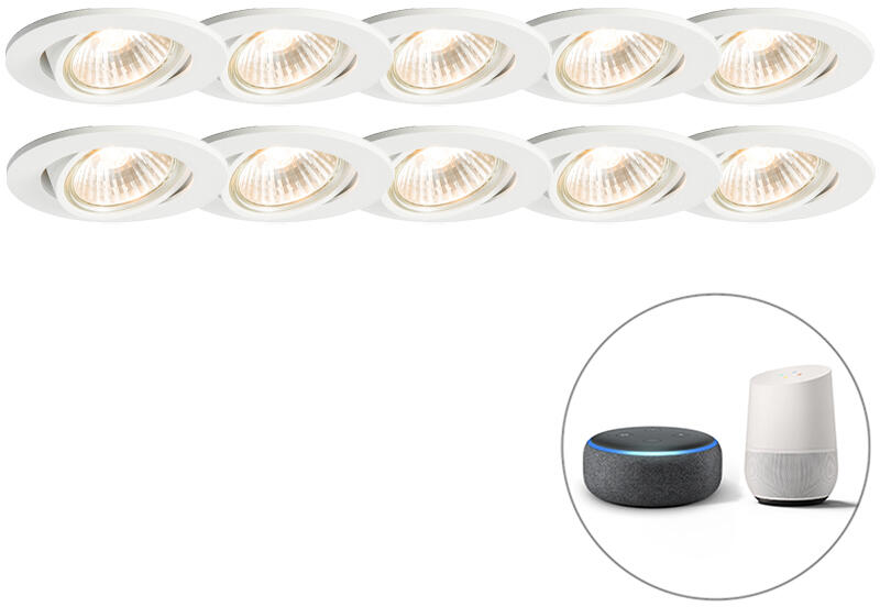 QAZQA 10 db-os készlet intelligens beépíthető spotlámpa fehér dönthető, Wi-Fi-vel, GU10 foglalattal - Cisco (106205)