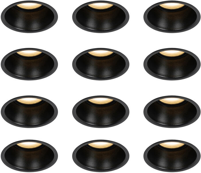 QAZQA 12 db fekete GU10 beépíthető spotlámpa szett 50 mm IP44 - Dept (109322)