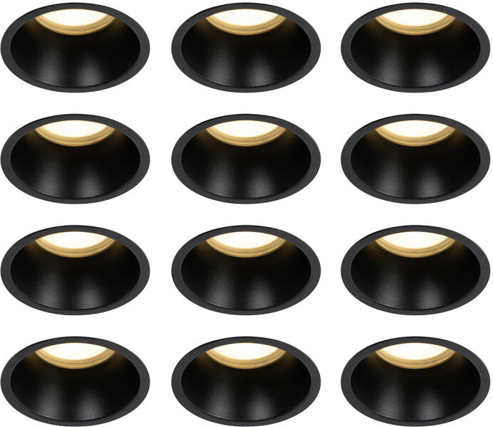 QAZQA 12 db-os süllyesztett spotlámpa szett fekete GU10 70 mm IP44 - Dept (109318)