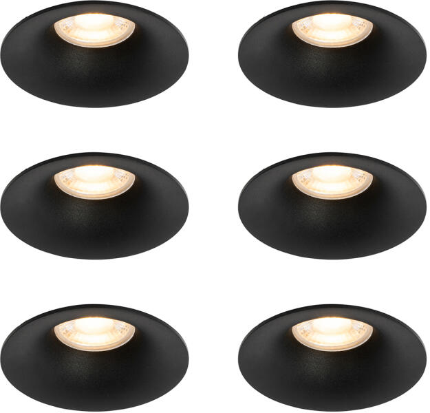 QAZQA 6 db fekete GU10 beépíthető spotlámpa szett 50 mm - Gijs (109331)