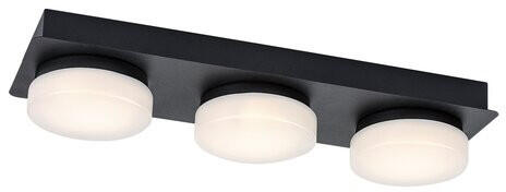 Az egyszerű formatervezésű Attichus hármas fürdőszobai mennyezeti lámpa szinte bármely modern fürdőszobába praktikus választás lehet. A fémből készült matt fekete lámpát kerek, fehér műanyagbúrák egészítik ki, és téglalap alakú dísztalp segítségével rögzíthető a mennyezetre. A letisztult dizájnnak és a fekete-fehér színkombinációnak köszönhetően ez a modell számos enteriőrbe remekül illeszkedik. Az Attichus az F energiaosztályba tartozó beépített LED fényforrásokkal rendelkezik, amelyek összteljesítménye 18 W, fényerejük búrával 1700 lumen, búra nélkül 2350 lumen, élettartamuk pedig 30 000 óra. A 4000 K színhőmérsékletű fényforrások természetes fehér fénnyel világítanak, ami modern, tiszta hatást kelt a fürdőben. A lámpa IP44-es védettsége biztosítja, hogy 1 mm-nél nagyobb átmérőjű szilárd részecskék behatolása ellen, valamint bármilyen irányból fröccsenő víz ellen védett. A hármas mennyezeti lámpa szélessége 430 mm, mennyezettől mért távolsága 70 mm.