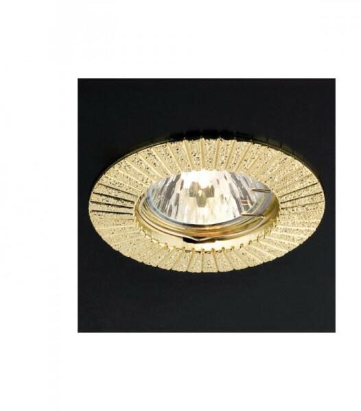 Fényes sárgaréz színű, beépíthető, barázdált, kerek mennyezeti spot lámpa, alumínium vázzal.