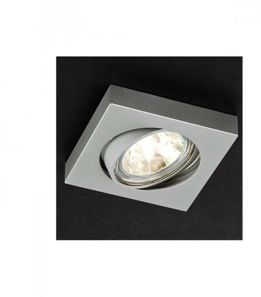 Beépíthető, billenthető, szögletes mennyezeti spot lámpa, ezüst színű alumínium vázzal.