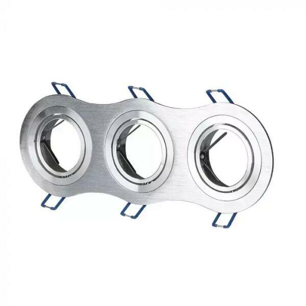 V-Tac SKU-3604 SPOT beépíthető tripla lámpa keret szálcsiszolt ALU kerek billenthető 235x75mm kivágá (3604)